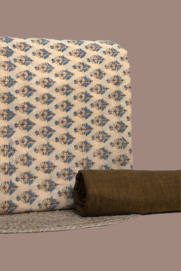 2.5mtr Each – HandBlock Printed Pure Soft Cotton Top With Handloom Cotton Bottom Fabric Set