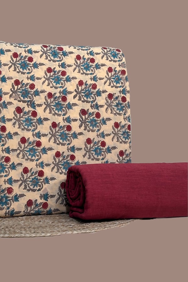 2pc Pure Soft Cotton Blockprinted Top and Bottom Fabric Set