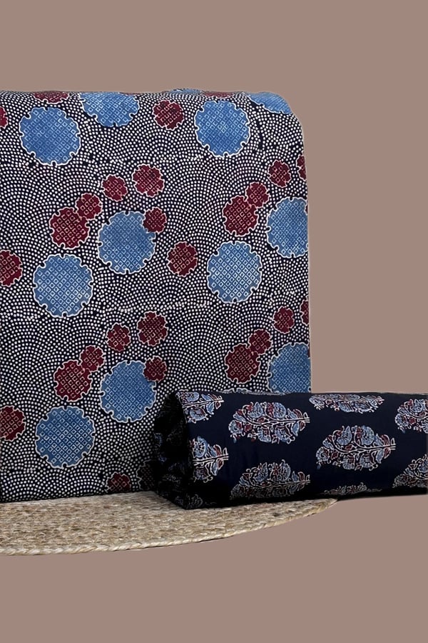 2.5mtr Each – Natural Dye Ajrakh HandBlock Printed Cotton Top and Bottom Cotton Fabric Set