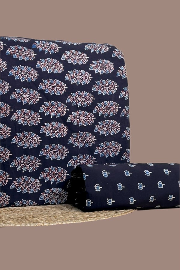 2.5mtr Each – Natural Dye Ajrakh HandBlock Printed Cotton Top and Bottom Cotton Fabric Set