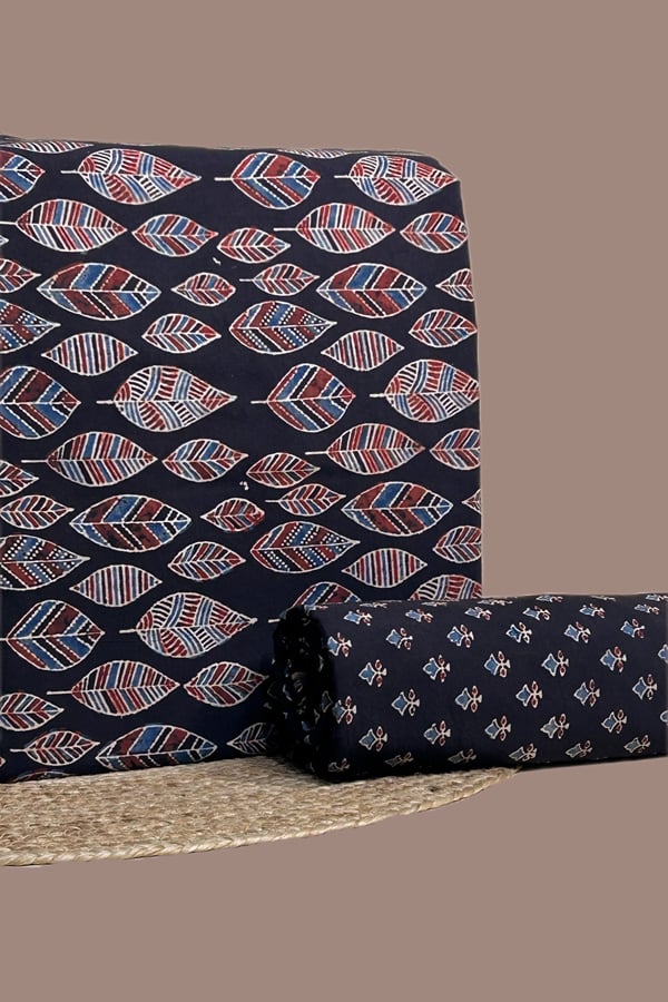 2.5mtr Each – Natural Dye Ajrakh HandBlock Printed Cotton Top and Bottom Cotton Fabric Set