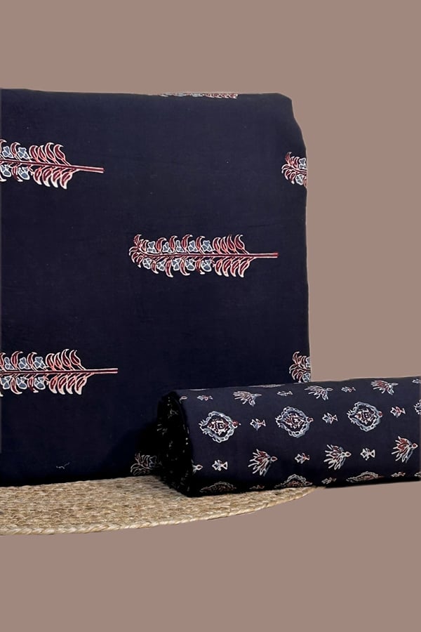 2.5mtr Each – Natural Dye Ajrakh HandBlock Printed Cotton Top and Bottom Cotton Fabric Set