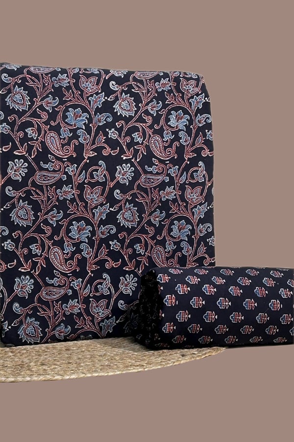 2.5mtr Each – Natural Dye Ajrakh HandBlock Printed Cotton Top and Bottom Cotton Fabric Set