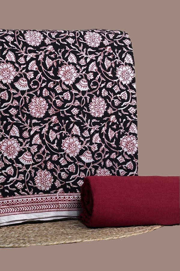 Black – 2pc Bagh Handblock Top and Handloom Bottom Cotton Fabric Set