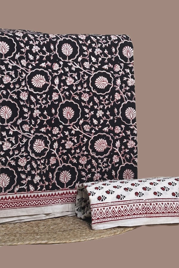 Black – 2pc Bagh HandCrafted Top and Bottom Cotton Fabric Set