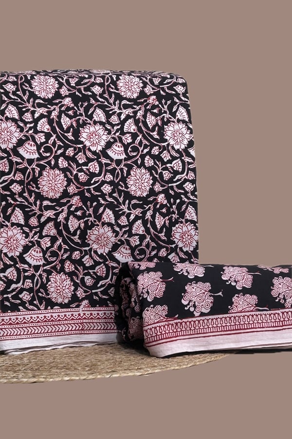 2pc Pure Soft Cotton Blockprinted Top and Bottom Fabric Set