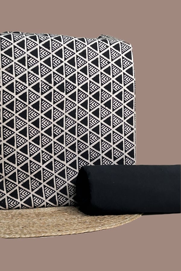 Black – 2pc Bagru Blockprint Top and Plain Dyed Cotton Bottom Fabric Set