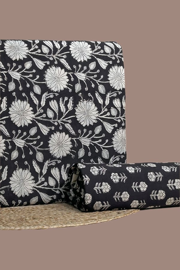 Black – 2pc Pure Soft Cotton Blockprinted Top and Bottom Fabric Set