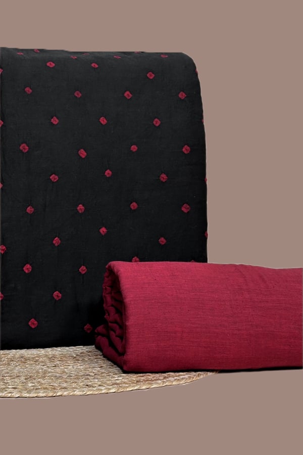 Black – 2pc Hand Tie-Dye Bandhani Pure Cotton Top With Handloom Bottom Fabric Set