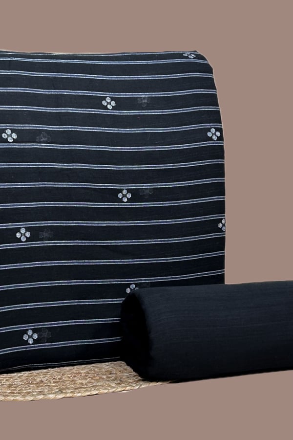 Black – 2pc Handloom Woven Design Cotton Top and Handloom Soft Cotton Bottom Fabric Set