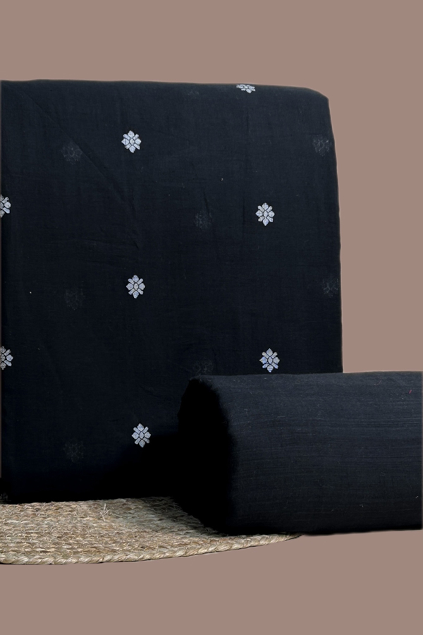 Black – 2pc Handloom Woven Design Cotton Top and Handloom Soft Cotton Bottom Fabric Set