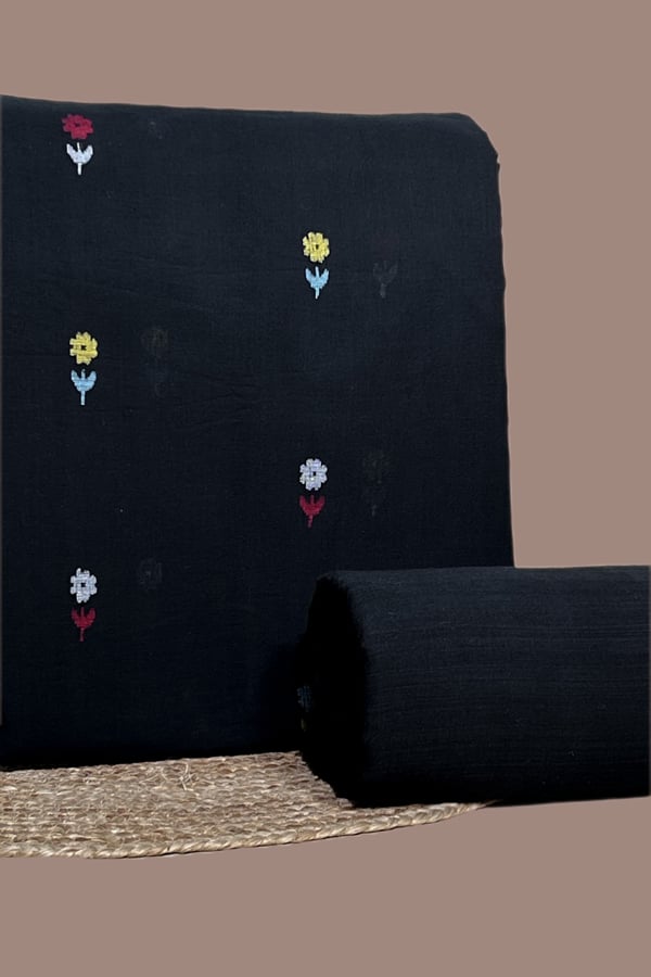 Black – 2pc Handloom Woven Design Cotton Top and Handloom Soft Cotton Bottom Fabric Set