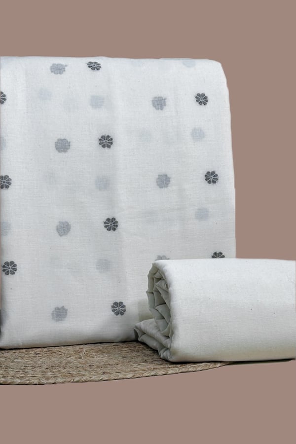 White - 2pc Handloom Woven Design Cotton Top and Handloom Soft Cotton Bottom Fabric Set