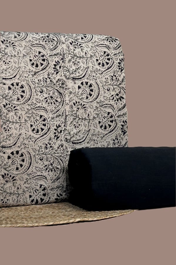 Black – 2pc Kalamkari Blockprinted Soft Cotton Top and Handloom Soft Cotton Bottom Fabric Set