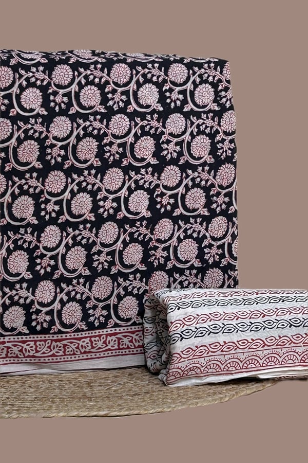 2pc Bagru HandCrafted Top and Plain Dyed Cotton Bottom Fabric Set