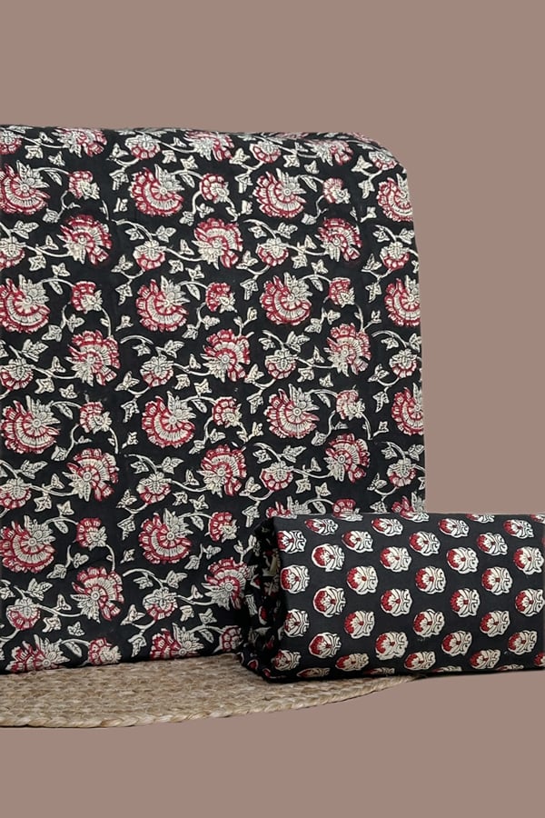 Black – 2pc Pure Soft Cotton Blockprinted Top and Bottom Fabric Set