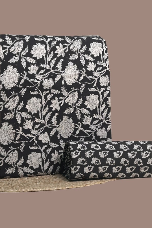 Black – 2pc Pure Soft Cotton Blockprinted Top and Bottom Fabric Set