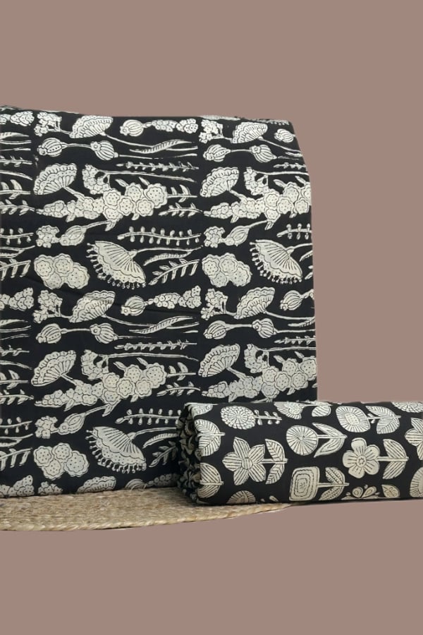 Black – 2pc Pure Soft Cotton Blockprinted Top and Bottom Fabric Set