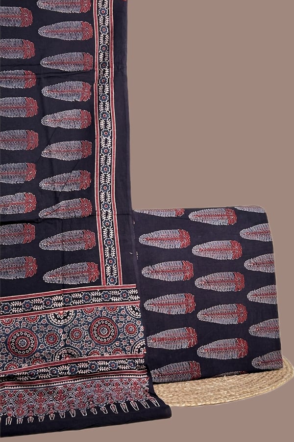 Black - 2pc Ajrakh HandCrafted Cotton Dupatta and Top Cotton Fabric Set