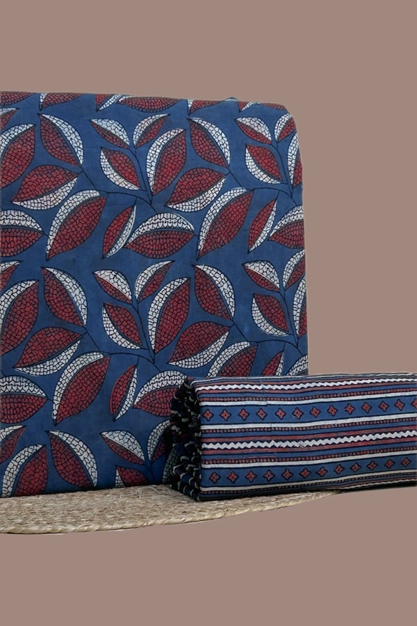 2.5mtr Each – Natural Dye Ajrakh HandBlock Printed Cotton Top and Bottom Cotton Fabric Set
