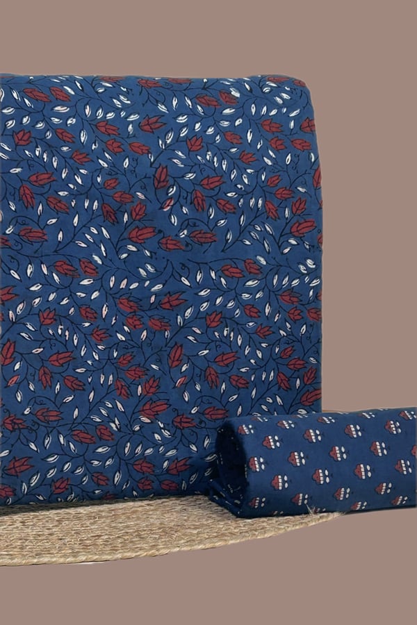 2.5mtr Each – Natural Dye Ajrakh HandBlock Printed Cotton Top and Bottom Cotton Fabric Set