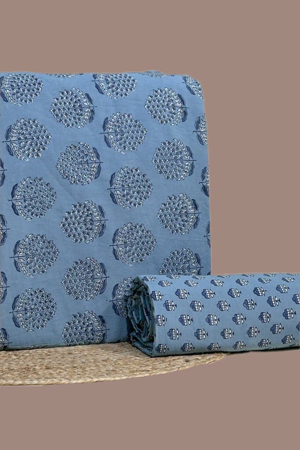 Blue – 2pc Ajrakh HandCrafted Cotton Top and Bottom Cotton Fabric Set
