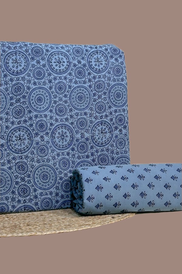 2pc Pure Soft Cotton Blockprinted Top and Bottom Fabric Set