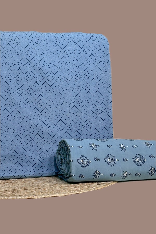 Blue – 2pc Ajrakh HandCrafted Cotton Top and Bottom Cotton Fabric Set