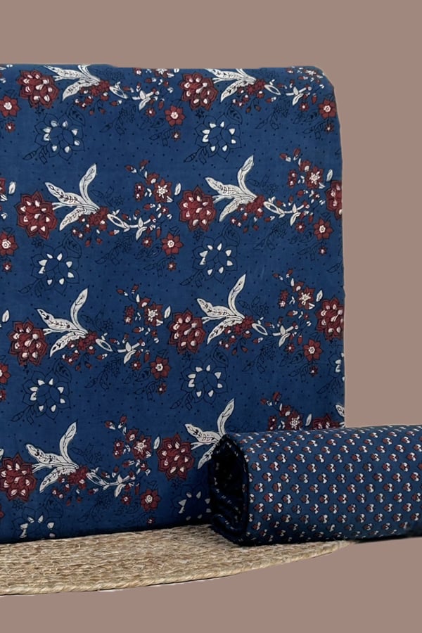 2.5mtr Each – Natural Dye Ajrakh HandBlock Printed Cotton Top and Bottom Cotton Fabric Set