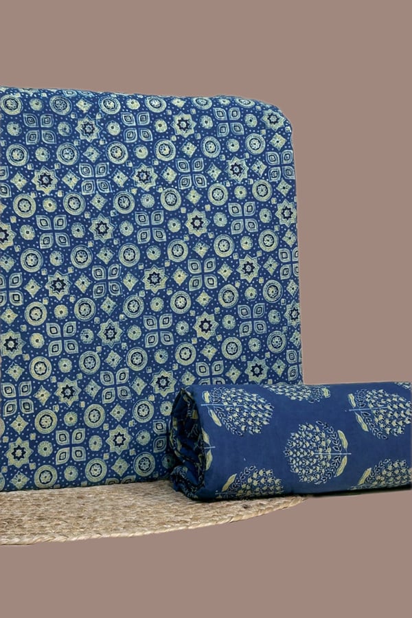 Blue – 2pc Ajrakh HandCrafted Cotton Top and Bottom Cotton Fabric Set