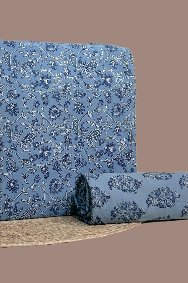 Blue – 2pc Ajrakh HandCrafted Cotton Top and Bottom Cotton Fabric Set