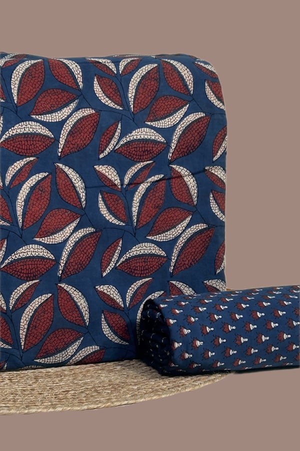 2.5mtr Each – Natural Dye Ajrakh HandBlock Printed Cotton Top and Bottom Cotton Fabric Set