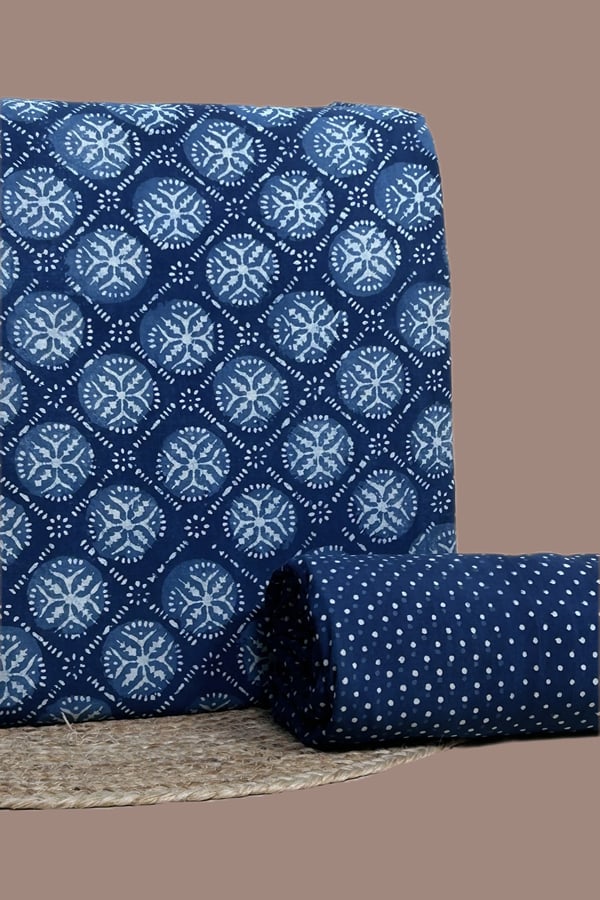 Natural Indigo Bagru Handblock Printed Cotton Fabric