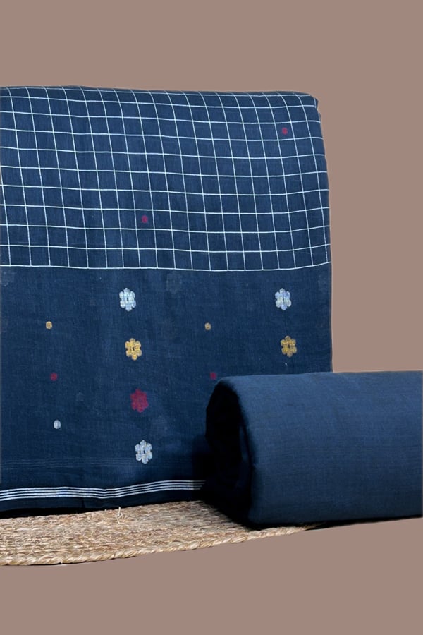 Blue – 2pc Jamdani Intricate Woven Cotton Top and Handloom Bottom Fabric Set