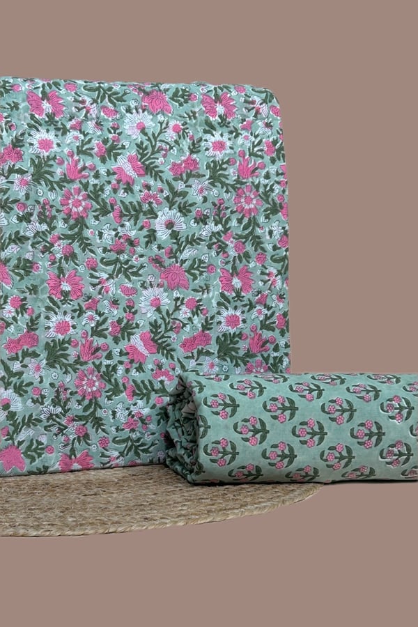 2pc Pure Soft Cotton Blockprinted Top and Bottom Fabric Set