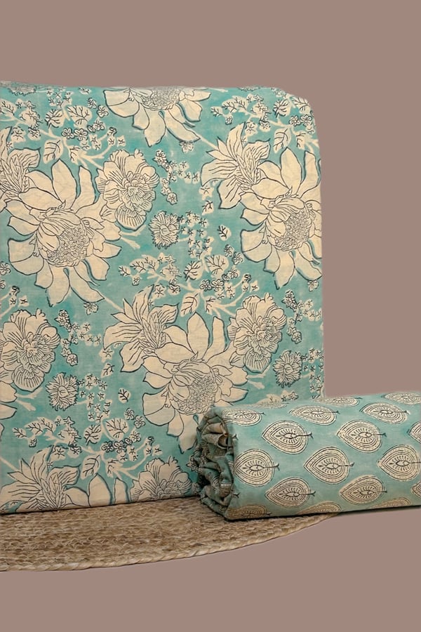 Blue – 2pc Pure Soft Cotton Blockprinted Top and Bottom Fabric Set