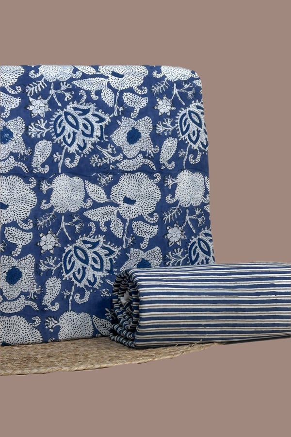 Blue – 2pc Pure Soft Cotton Blockprinted Top and Bottom Fabric Set