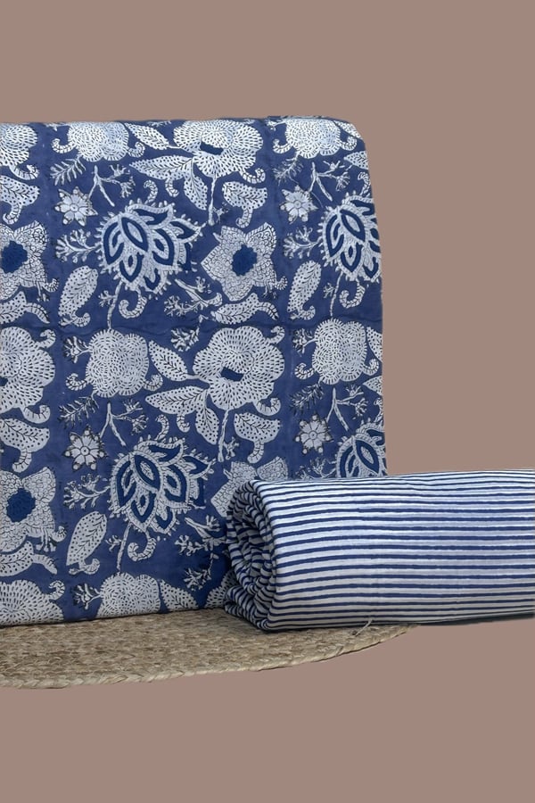 Blue – 2pc Pure Soft Cotton Blockprinted Top and Bottom Fabric Set