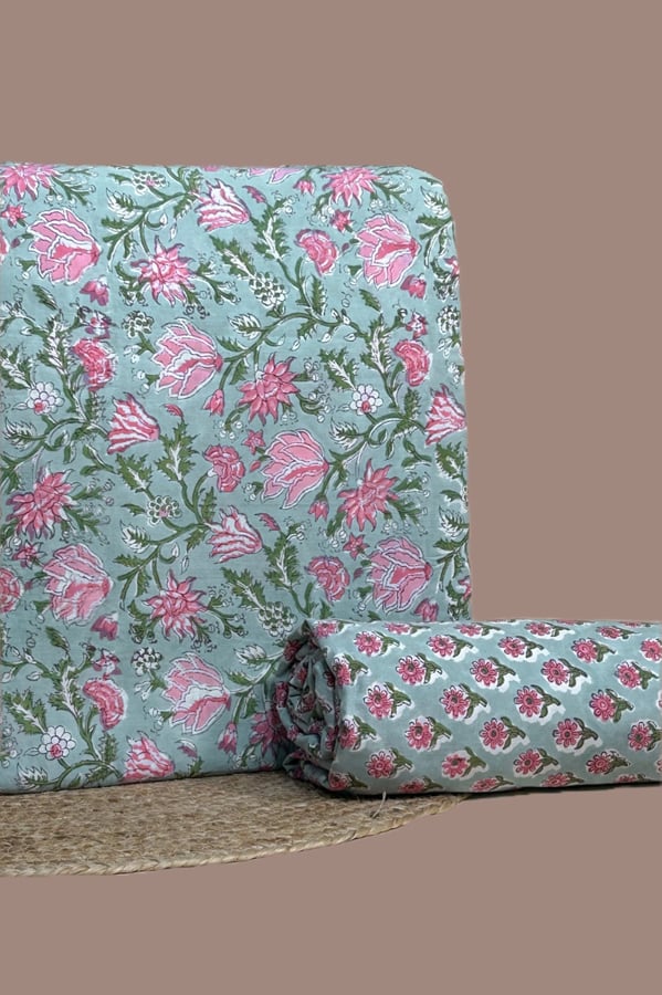 2.5mtr Each – HandBlock Printed Pure Soft Cotton Top Bottom Fabric Set