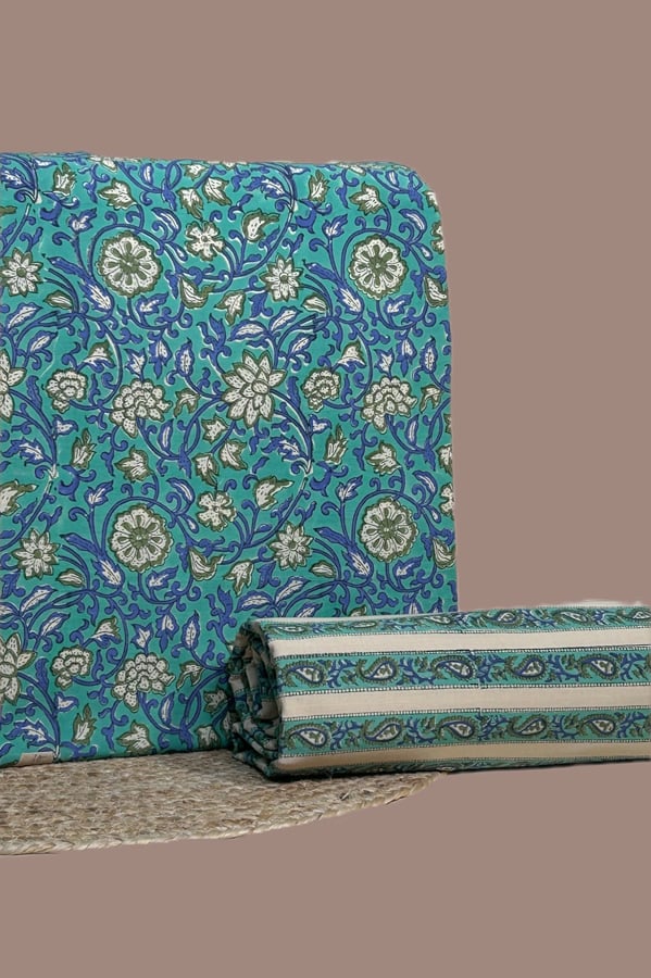 Blue – 2pc Pure Soft Cotton Blockprinted Top and Bottom Fabric Set