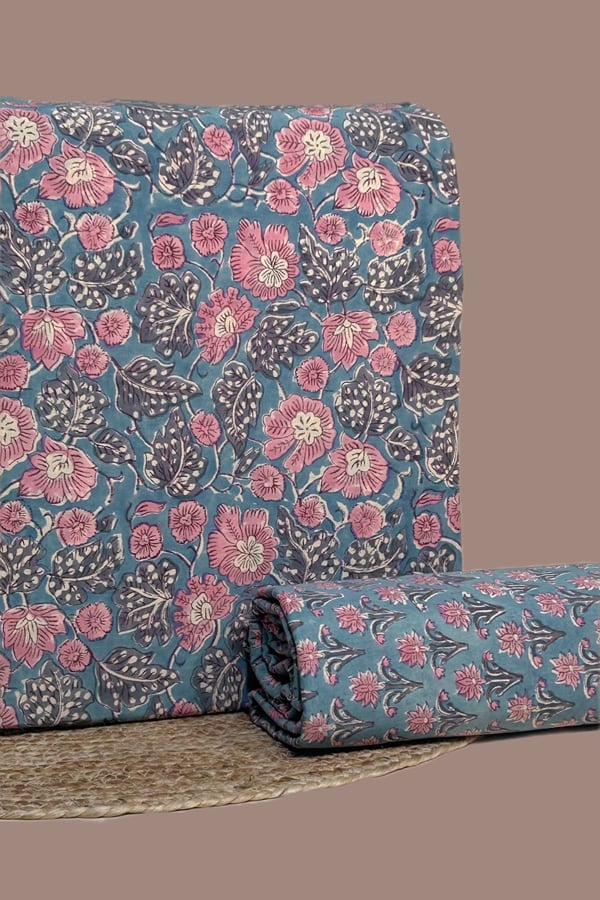 Blue – 2pc Pure Soft Cotton Blockprinted Top and Bottom Fabric Set