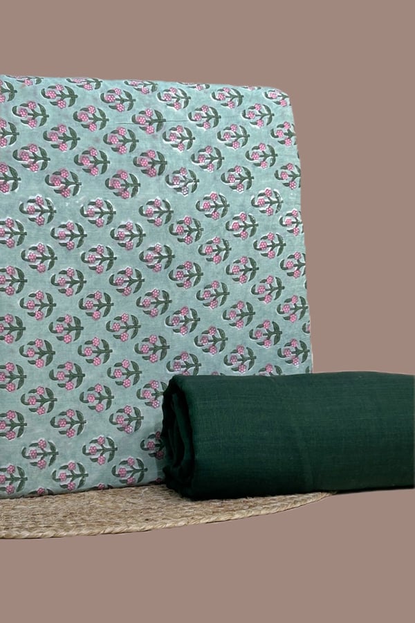 2.5mtr Each – HandBlock Printed Pure Soft Cotton Top With Handloom Cotton Bottom Fabric Set