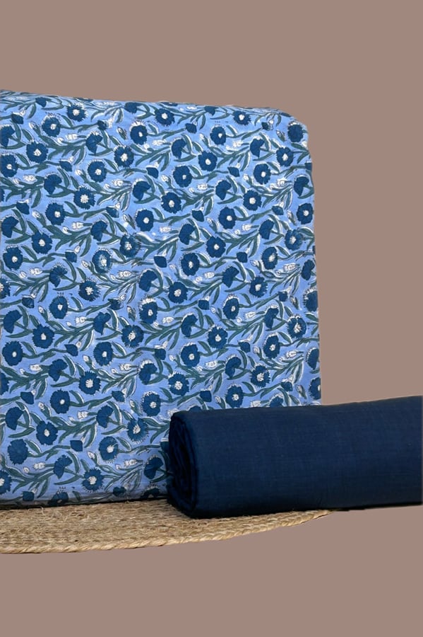 2pc Pure Soft Cotton Blockprinted Top and Bottom Fabric Set