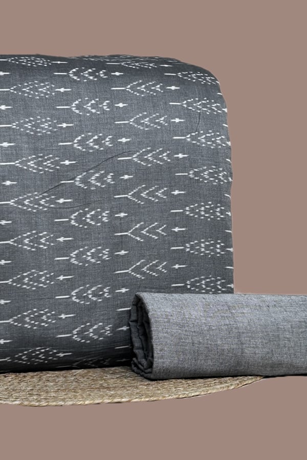 Gray – 2pc HandCrafted Ikkat Top and Handloom Soft Cotton Bottom Fabric Set