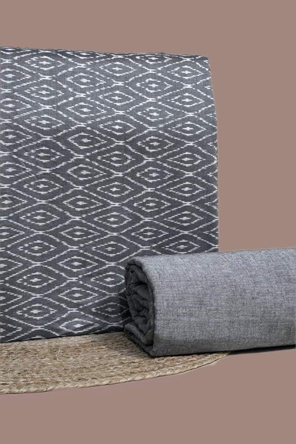 Gray – 2pc HandCrafted Ikkat Top and Handloom Soft Cotton Bottom Fabric Set