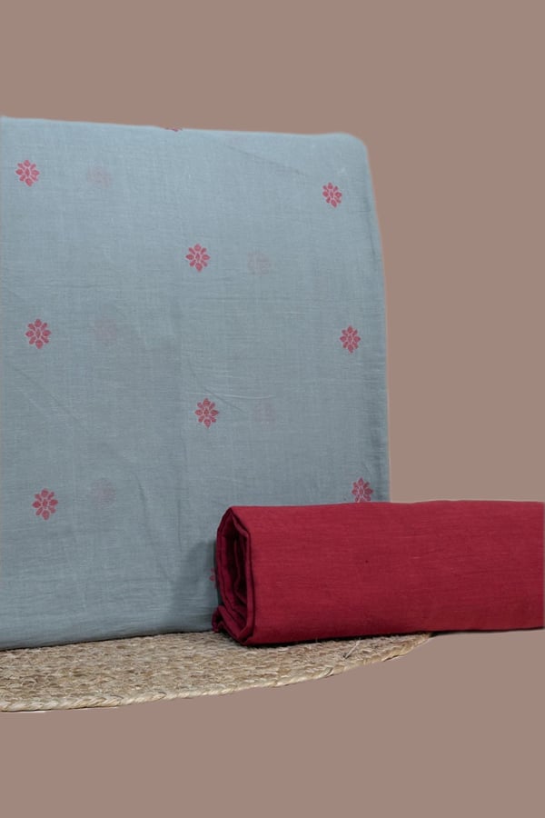 2.5mtr Each – Flowy Handloom Woven Design Cotton Top and Handloom Soft Cotton Bottom Fabric Set