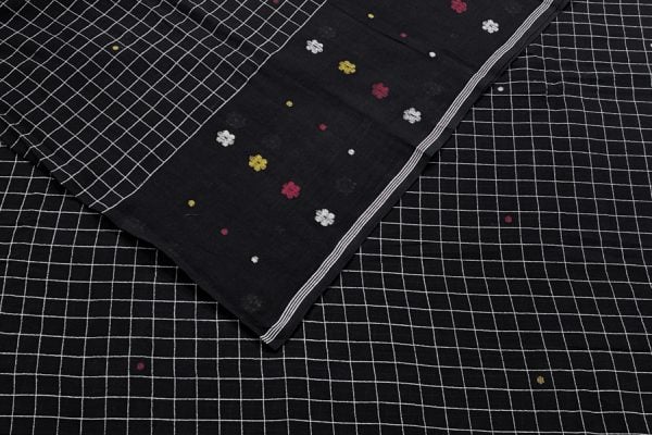 Black Handloom Intricate Border Flowy HandLoom Pure Soft Cotton Fabric