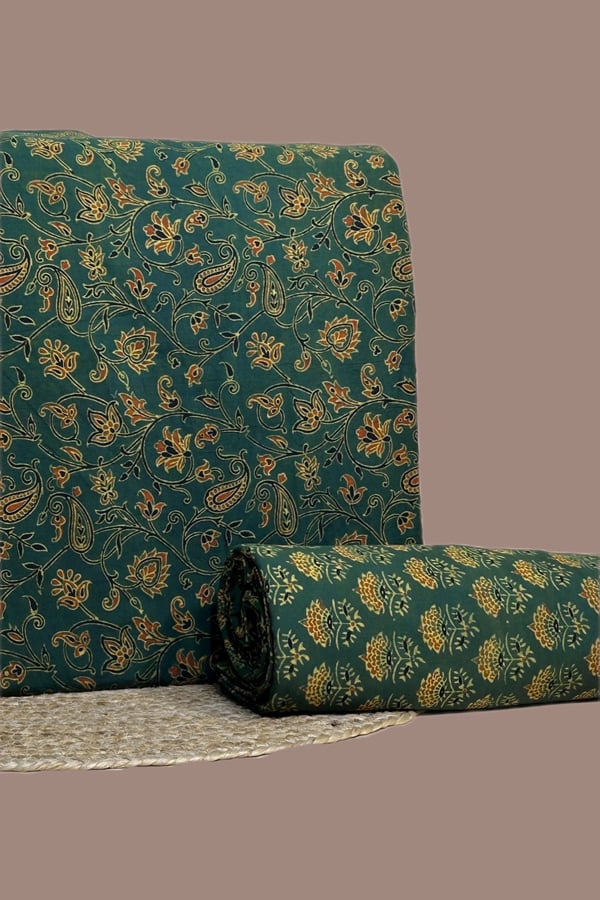Green – 2pc Ajrakh HandCrafted Cotton Top and Bottom Cotton Fabric Set