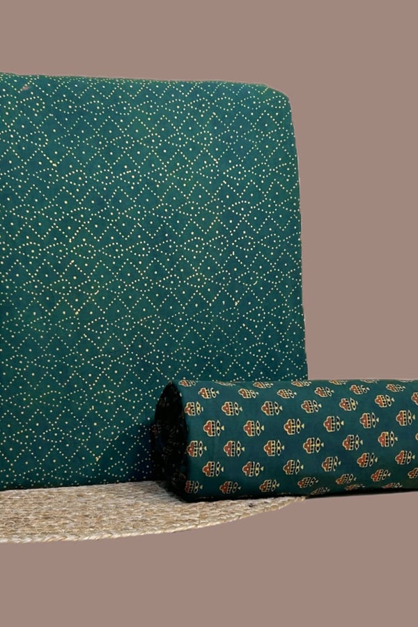 Green – 2pc Ajrakh HandCrafted Cotton Top and Bottom Cotton Fabric Set