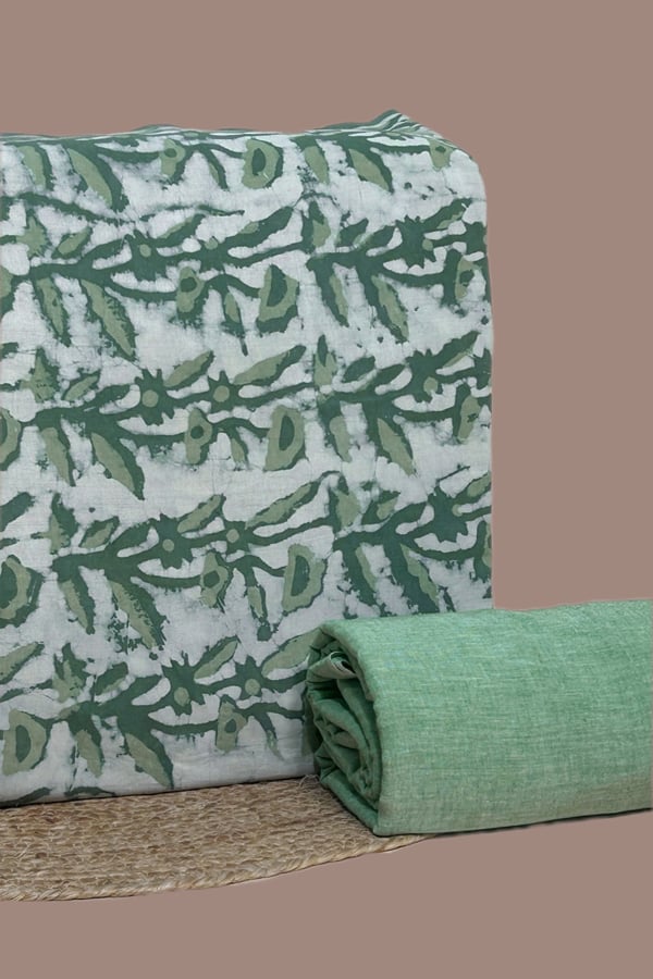 Green – 2pc Bagru HandCrafted Top and Handloom Soft Cotton Bottom Fabric Set